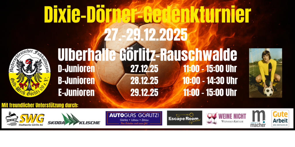 Vom 27.-29.12.2025 findet das nächste Dixie-Dörner Gedenkturnier des NFV09 statt.
